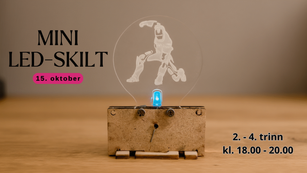 Vi skal lage en mini LED-skilt – en mindre og enklere versjon av det de eldre barna har bygget. Her får vi prøve oss med elektronikk på en morsom og kreativ måte.