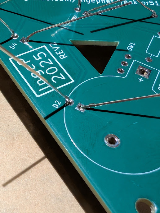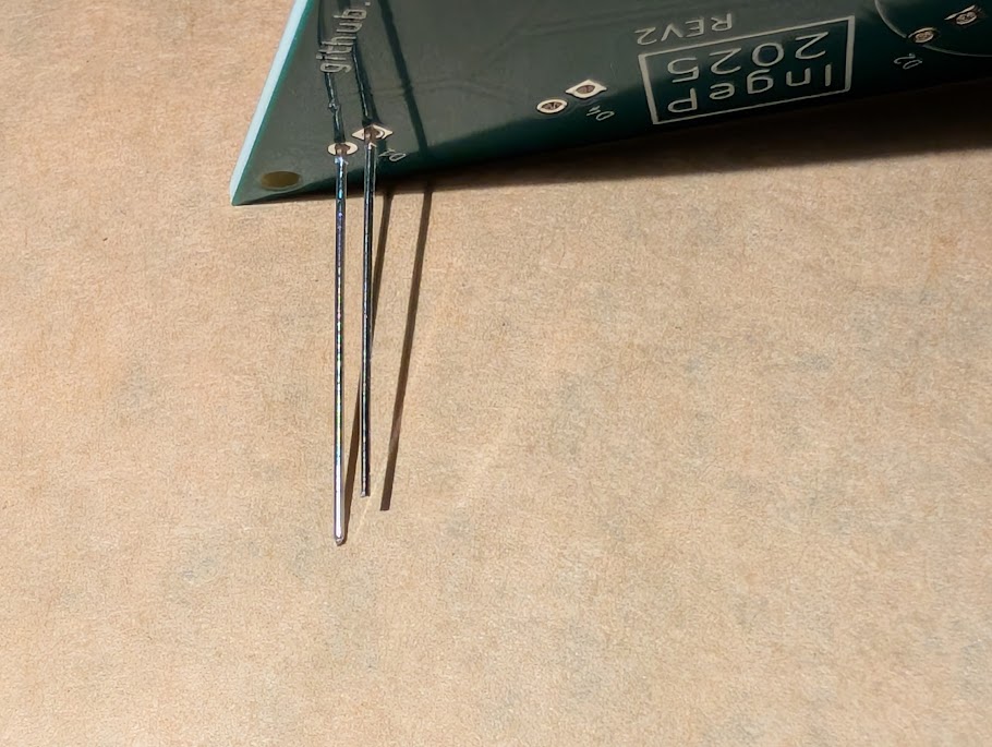 - Hold loddebolten mot delen og hullet på kortet, og før loddetinn på. Det smelter og fester delen.