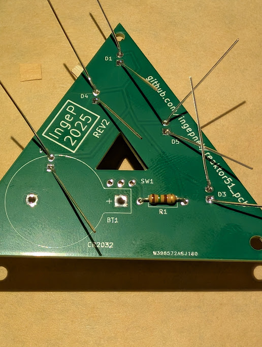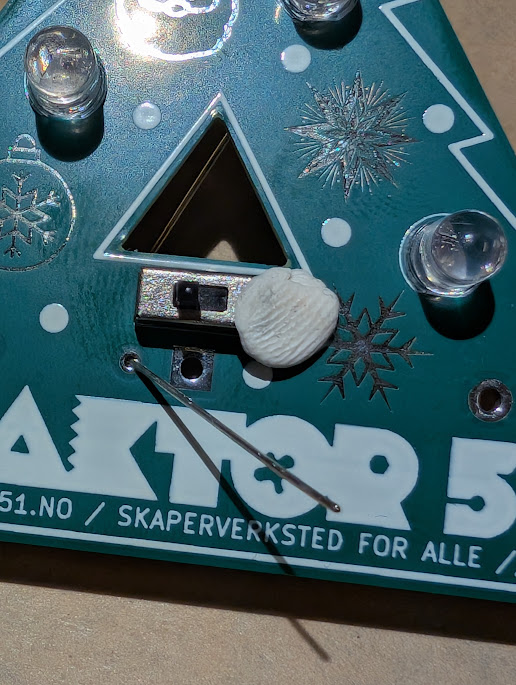 Når dette er gjort, er juletreet klart til å få et CR2032-batteri. Sett inn batteriet, slå på bryteren, og se det lyse! ✨